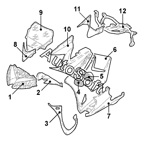 Каталог запасных частей к технике: Honda мото CBR 125 R (2012). Детали облицовки 1