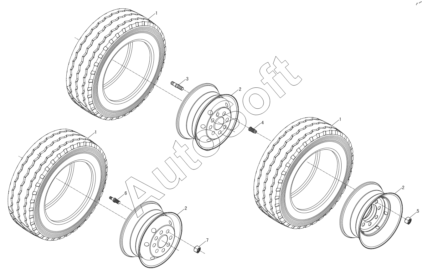 Каталог запасных частей к технике: JAC Motors HK6819H (2013). HK6819H-WS-01 Tyre Installation Assembly