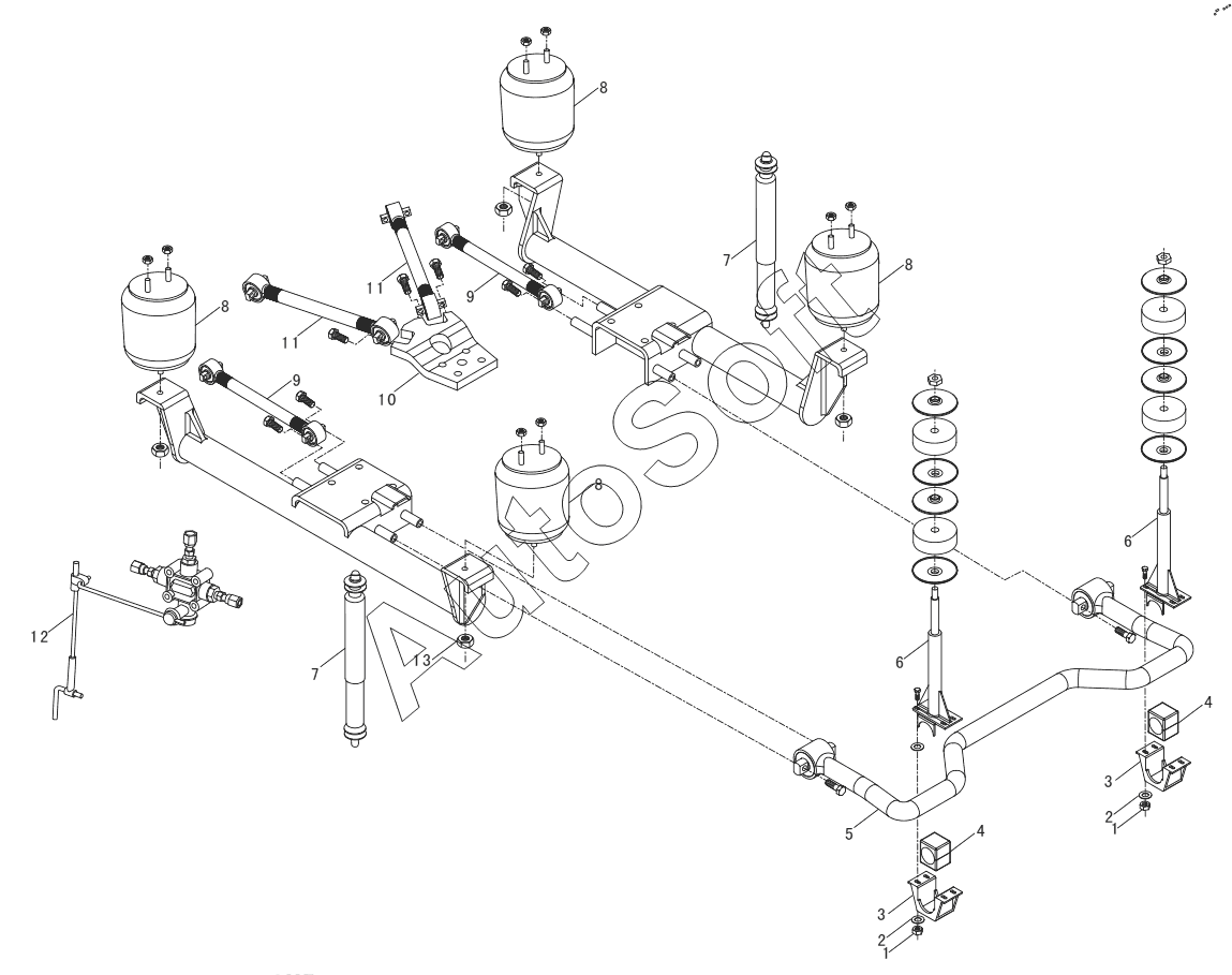 Каталог запасных частей к технике: JAC Motors HK6819H (2013). HK6819H-SP-02 Rear suspension assembly