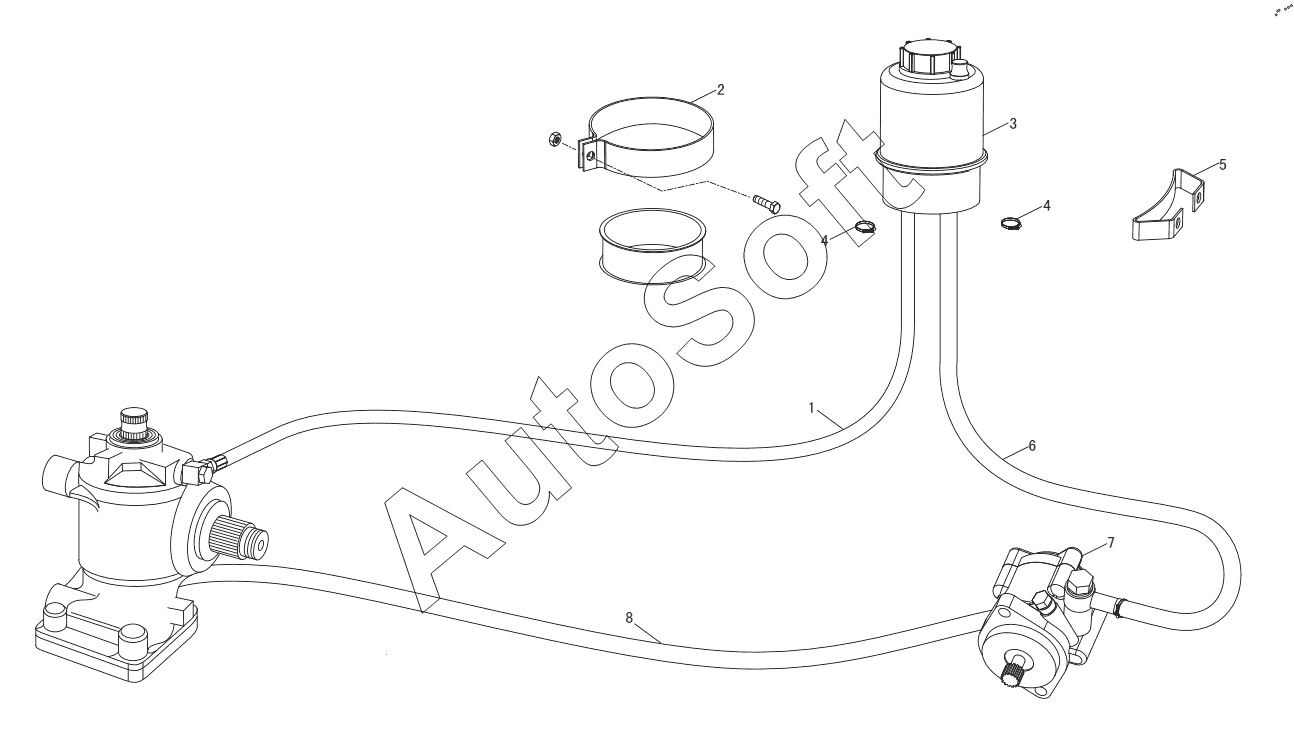 Каталог запасных частей к технике: JAC Motors HK6819H (2013). HK6819H-SS-03 Power Steering Pipeline