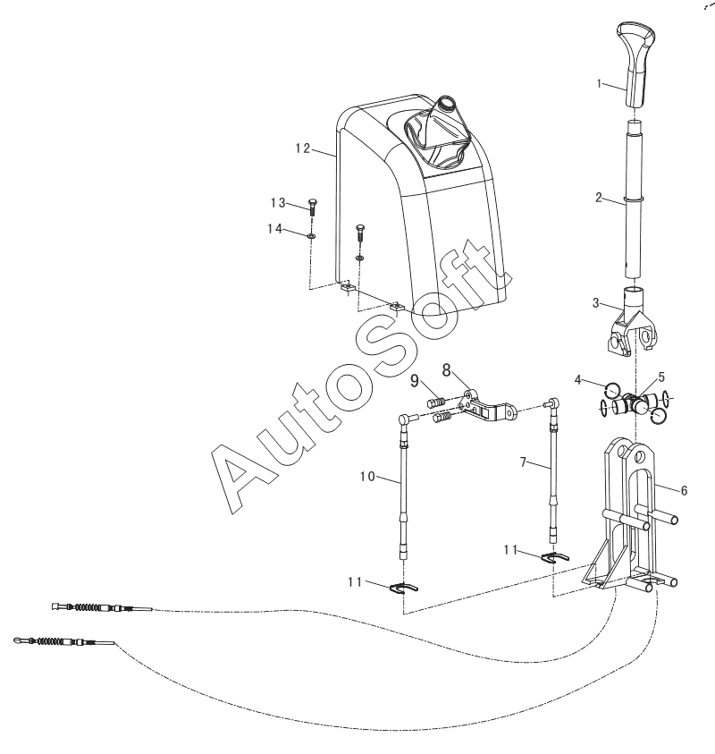 Каталог запасных частей к технике: JAC Motors HK6819H (2013). HK6819H-GB-01 Transmission Control Mechanism