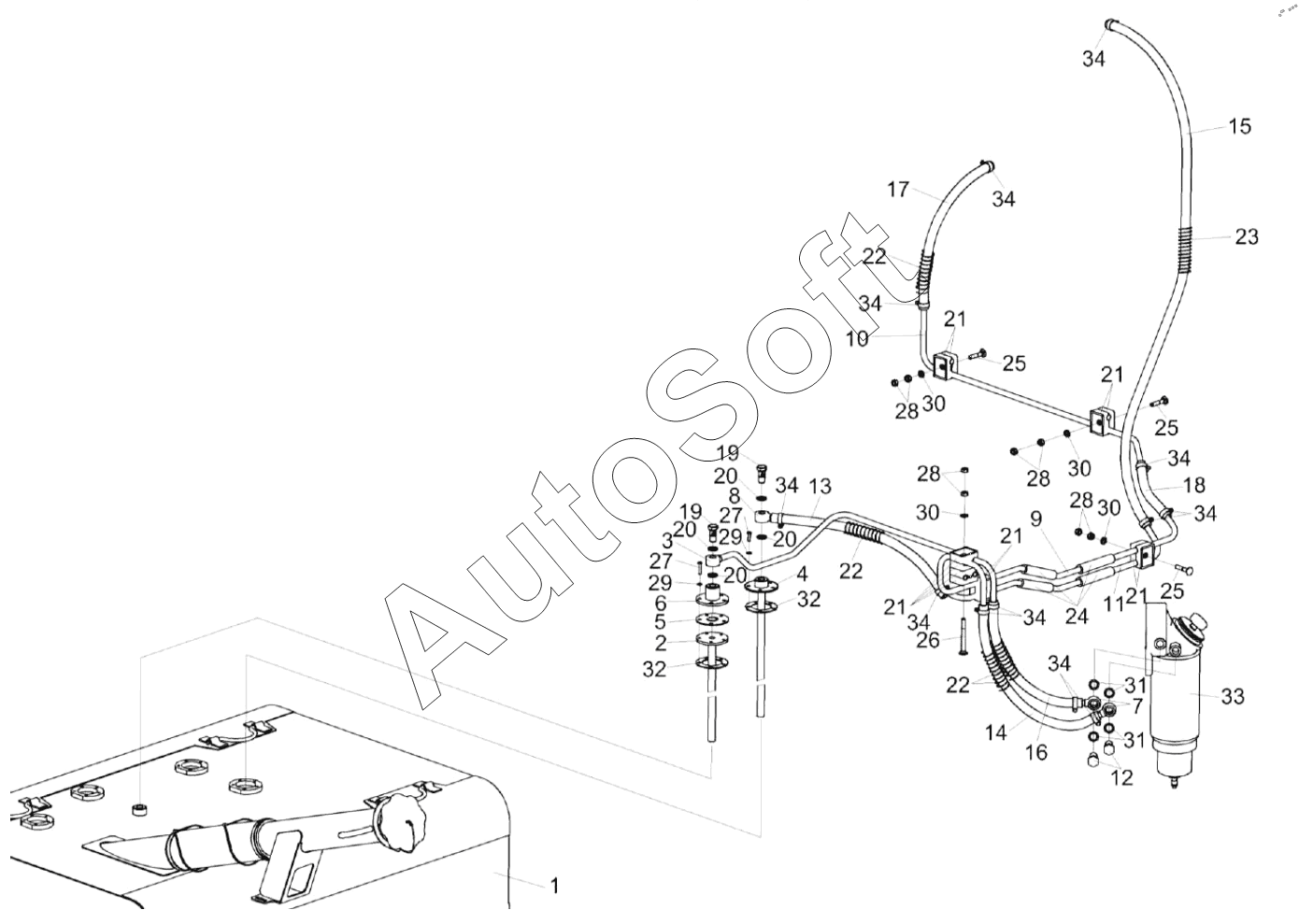 Каталог запасных частей к технике: Гомсельмаш ES6 (2023). Установка топливного оборудования КП-6-0126000
