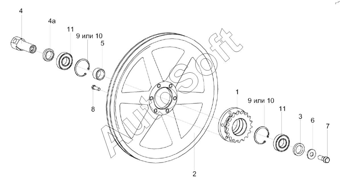 Каталог запасных частей к технике: Гомсельмаш ES6 (2023). Установка шкива КП-6-0104040