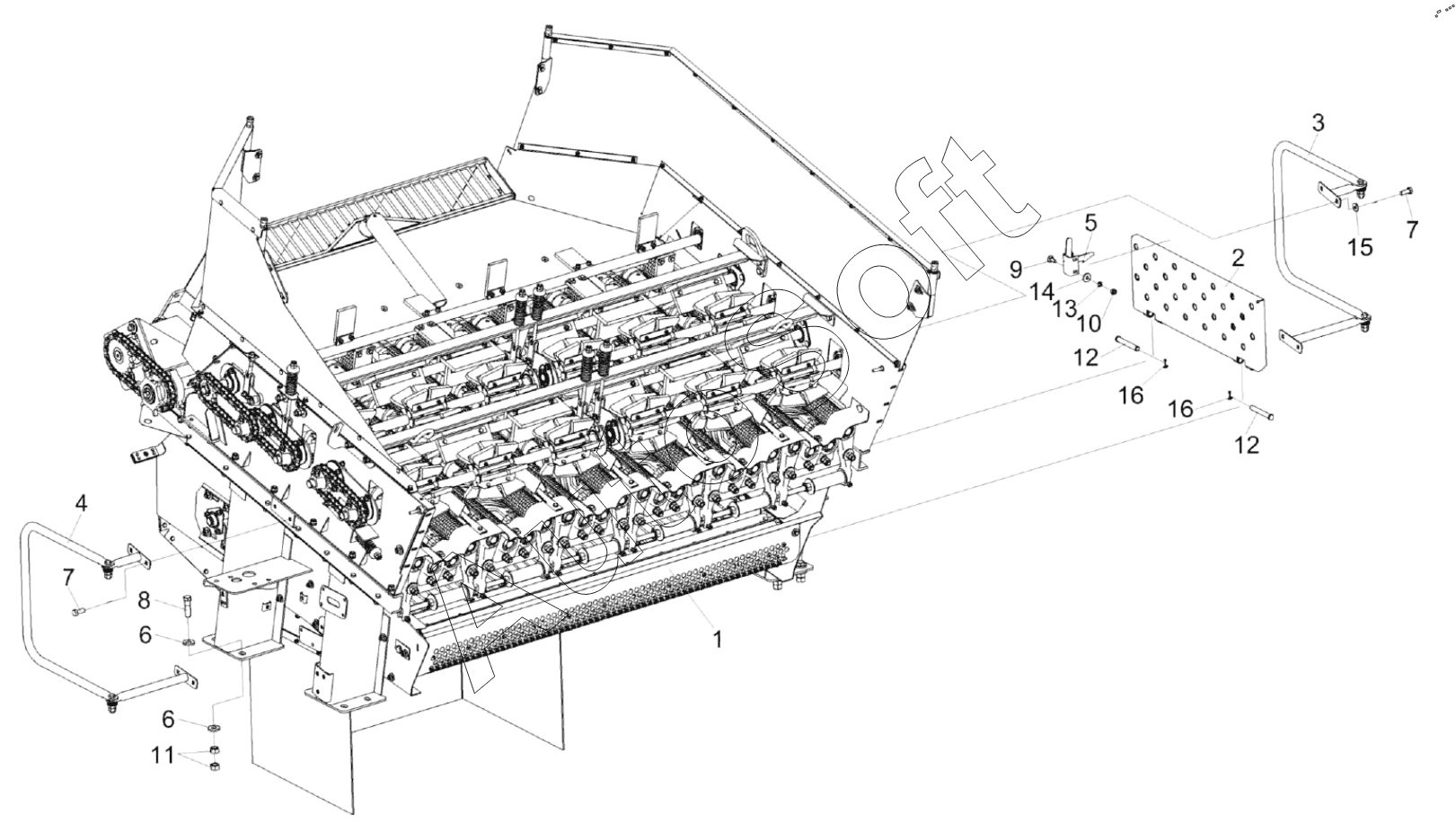 Каталог запасных частей к технике: Гомсельмаш ES6 (2023). Установка устройства початкоочистительного КП-6-0102000А