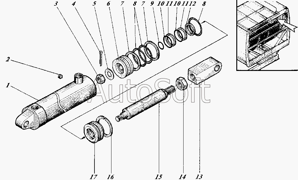 Каталог запасных частей к технике: Коммаш КО-440-4. Гидроцилиндр КО-510.01.09.000-03
