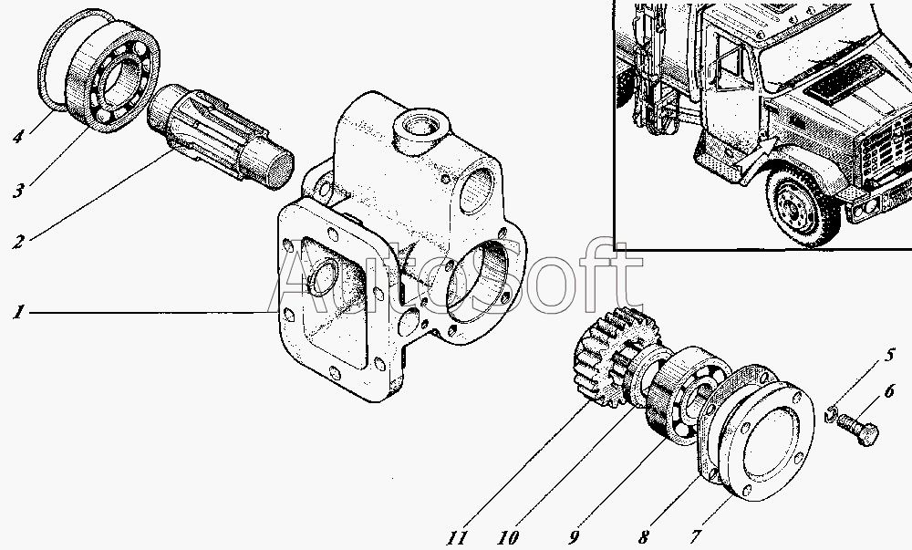 Каталог запасных частей к технике: Коммаш КО-440-4. Коробка отбора мощности КО-829.02.02.000