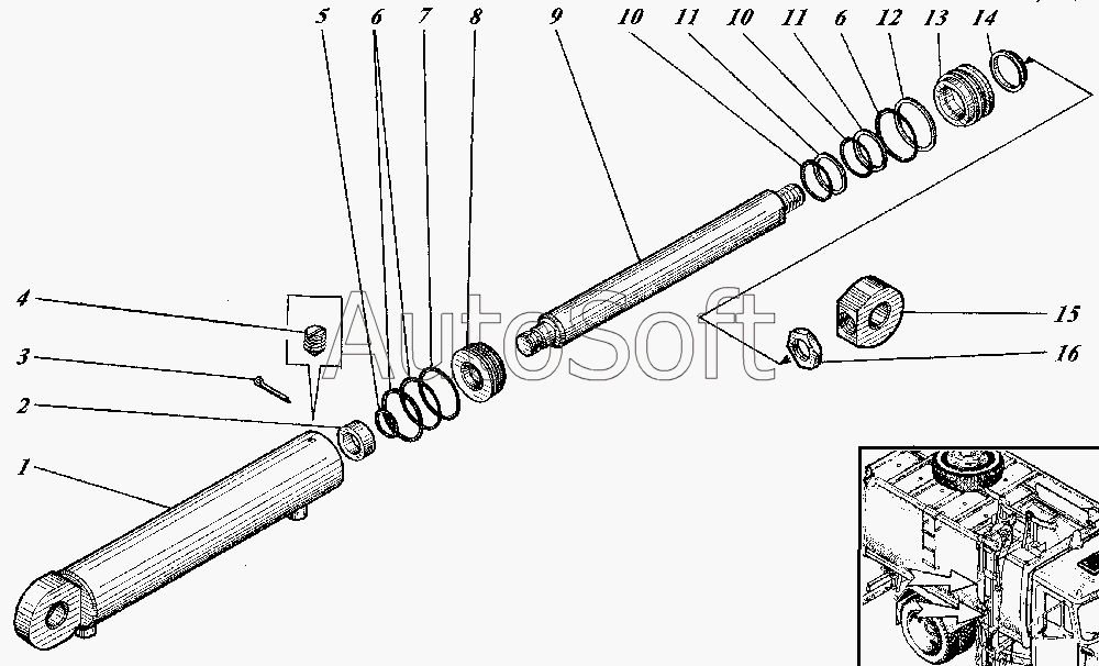 Каталог запасных частей к технике: Коммаш КО-440-4. Гидроцилиндр КО-440-2.18.10.000