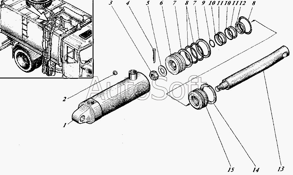 Каталог запасных частей к технике: Коммаш КО-440-4. Гидроцилиндр КО-510.01.09.000-06