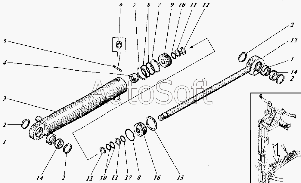 Каталог запасных частей к технике: Коммаш КО-440-4. Гидроцилиндр КО-440-2.18.19.000