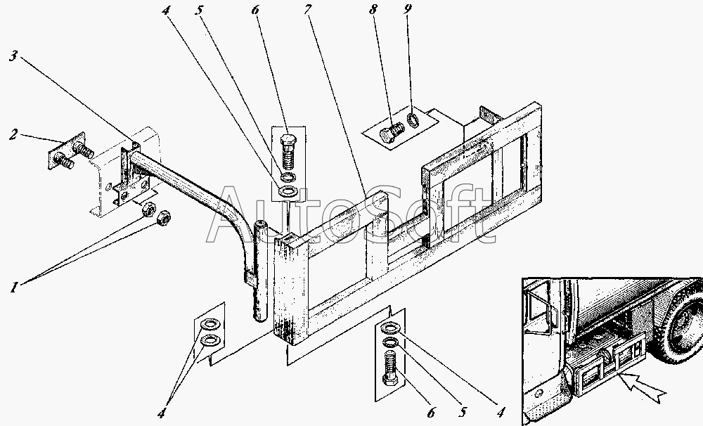 Каталог запасных частей к технике: Коммаш КО-440-4. Установка боковой защиты КО-440-4.29.00.000