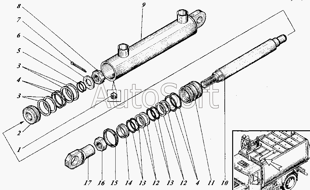 Каталог запасных частей к технике: Коммаш КО-440-4. Гидроцилиндр КО-440-04.08.000