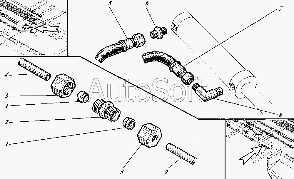Каталог запасных частей к технике: Коммаш КО-440-4. Монтаж гидросистемы надрамника КО-440-4.26.20.000