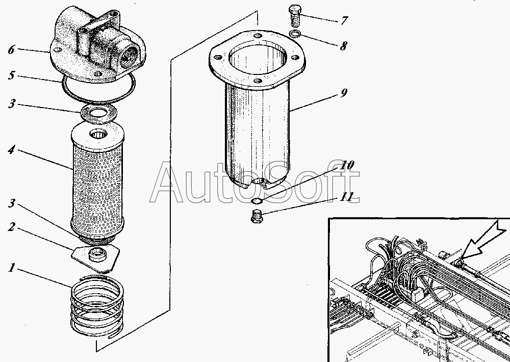 Каталог запасных частей к технике: Коммаш КО-440-4. Фильтр линейный КО-440.04.11.000