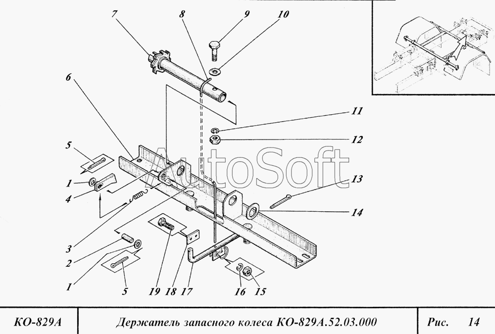 Каталог запасных частей к технике: Коммаш КО-829А (2004). Держатель запасного колеса
