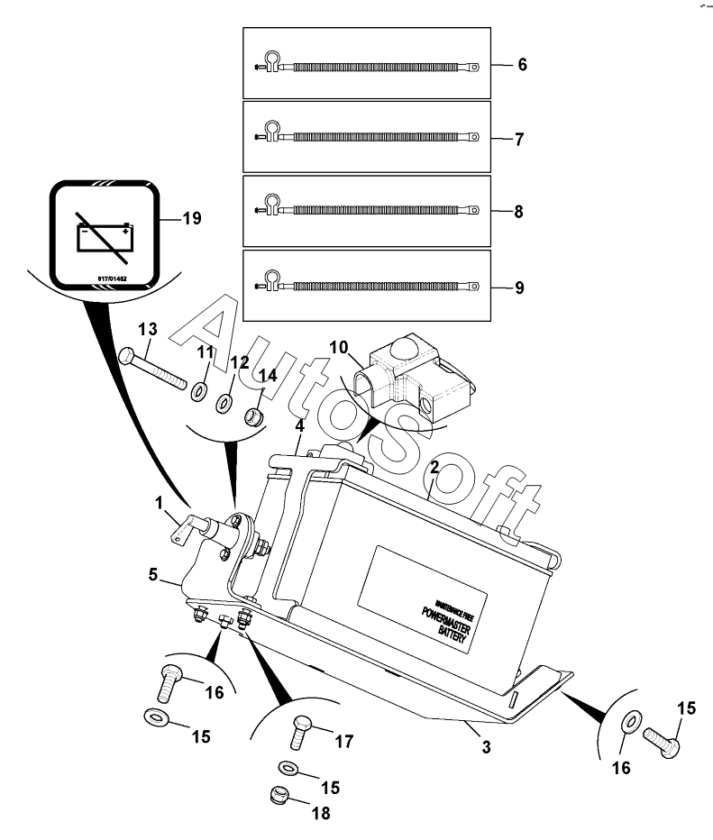 Каталог запасных частей к технике: Volvo MC105C. Battery with assembling details