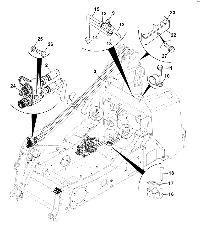 Каталог запасных частей к технике: Volvo MC105C. Hydraulic system, loading unit. RADIAL LIFT, AUX MC60C, MC70C, MCT70C