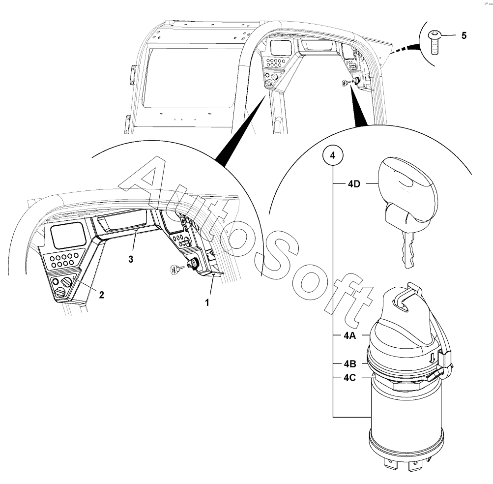 Каталог запасных частей к технике: Volvo MCT85C. Switches in cab with ignition key MC60C-MC105C, MCT70C-MCT95C