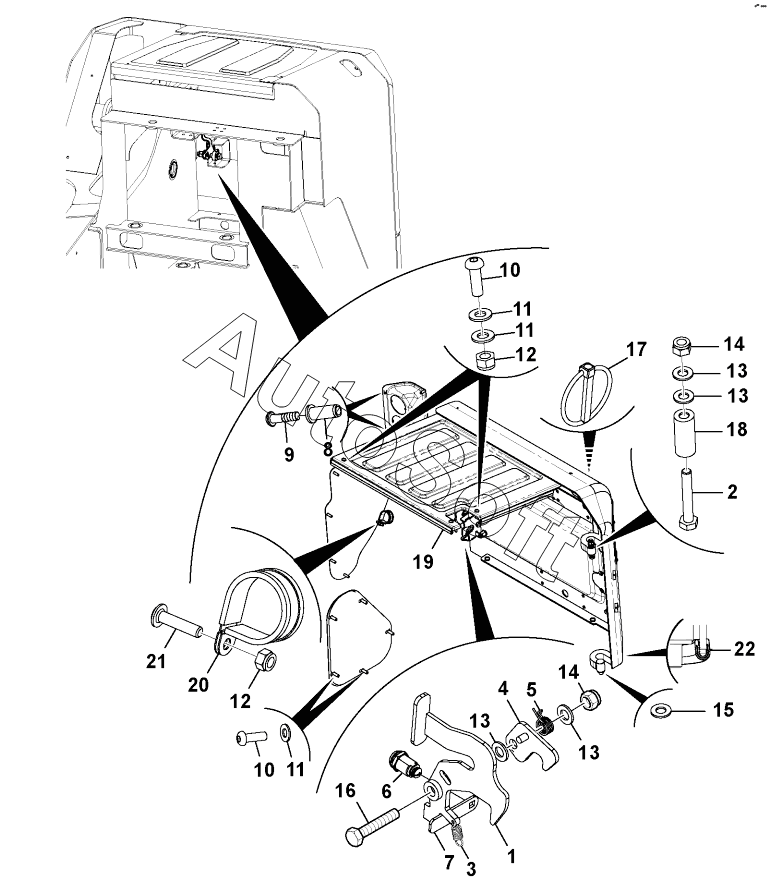 Каталог запасных частей к технике: Volvo MCT85C. Hood lock installation MC60C-MC105C, MCT70C-MCT95C