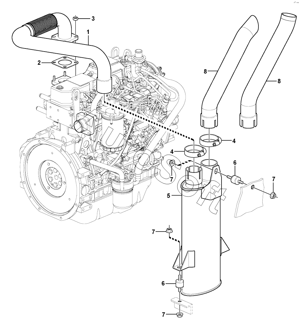 Каталог запасных частей к технике: Volvo MC80B. Exhaust system