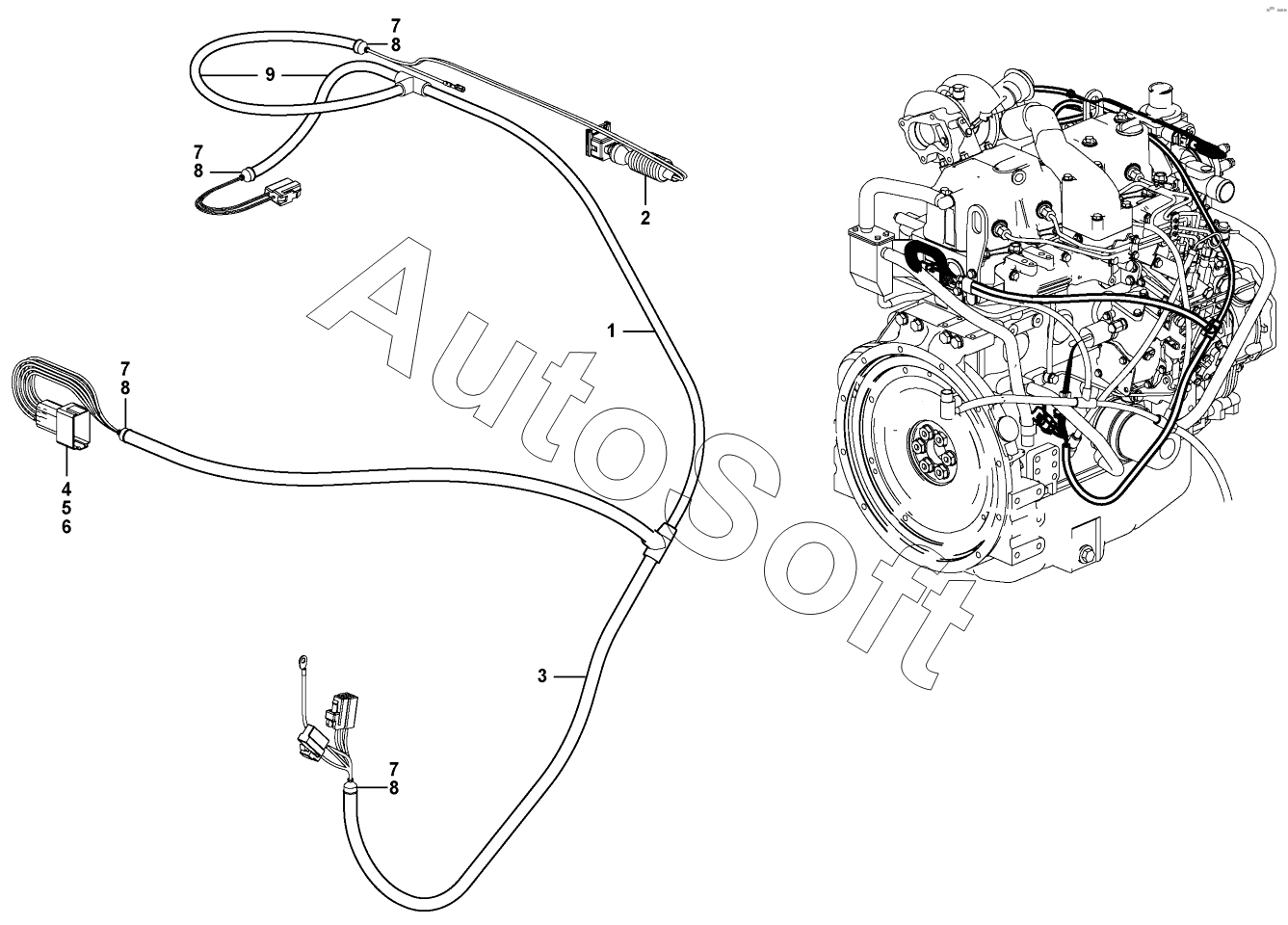 Каталог запасных частей к технике: Volvo MC80B. Cable harness, engine