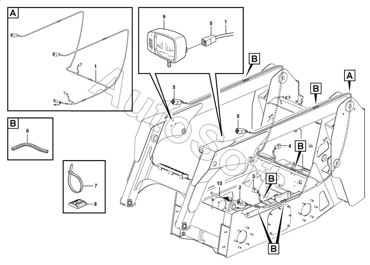 Каталог запасных частей к технике: Volvo MC80B. Cabel harness, lighting 11840331, 11840333, 11840335, 11840337