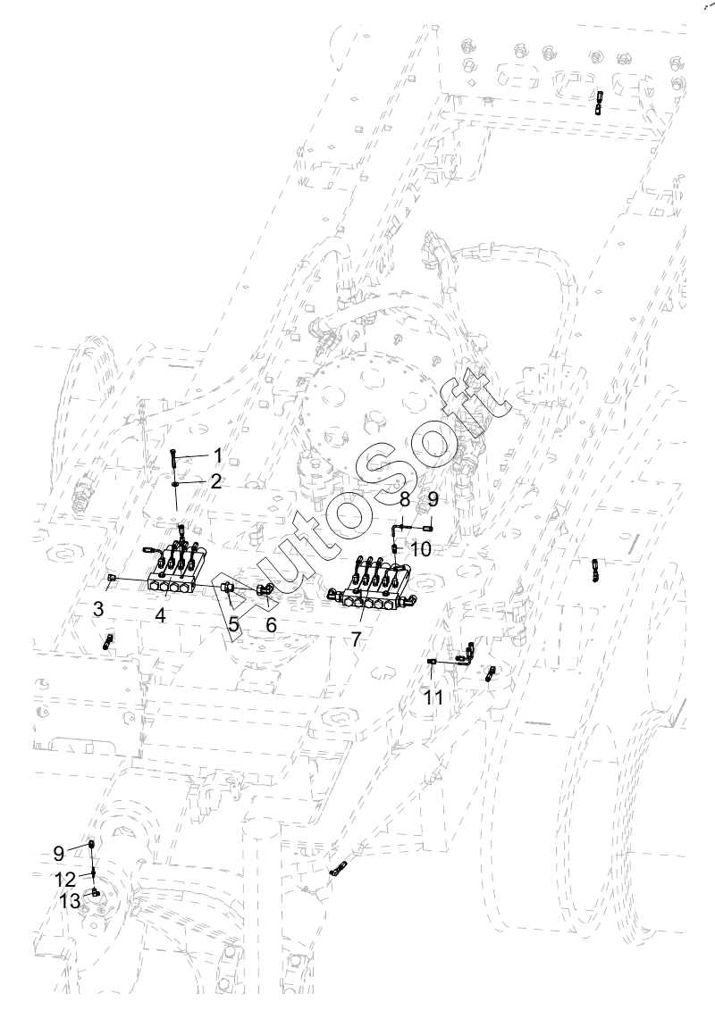Каталог запасных частей к технике: XCMG GR3005. 381303486 REAR CAR LUBRICATION SYSTEM WITH REAR LOOSE