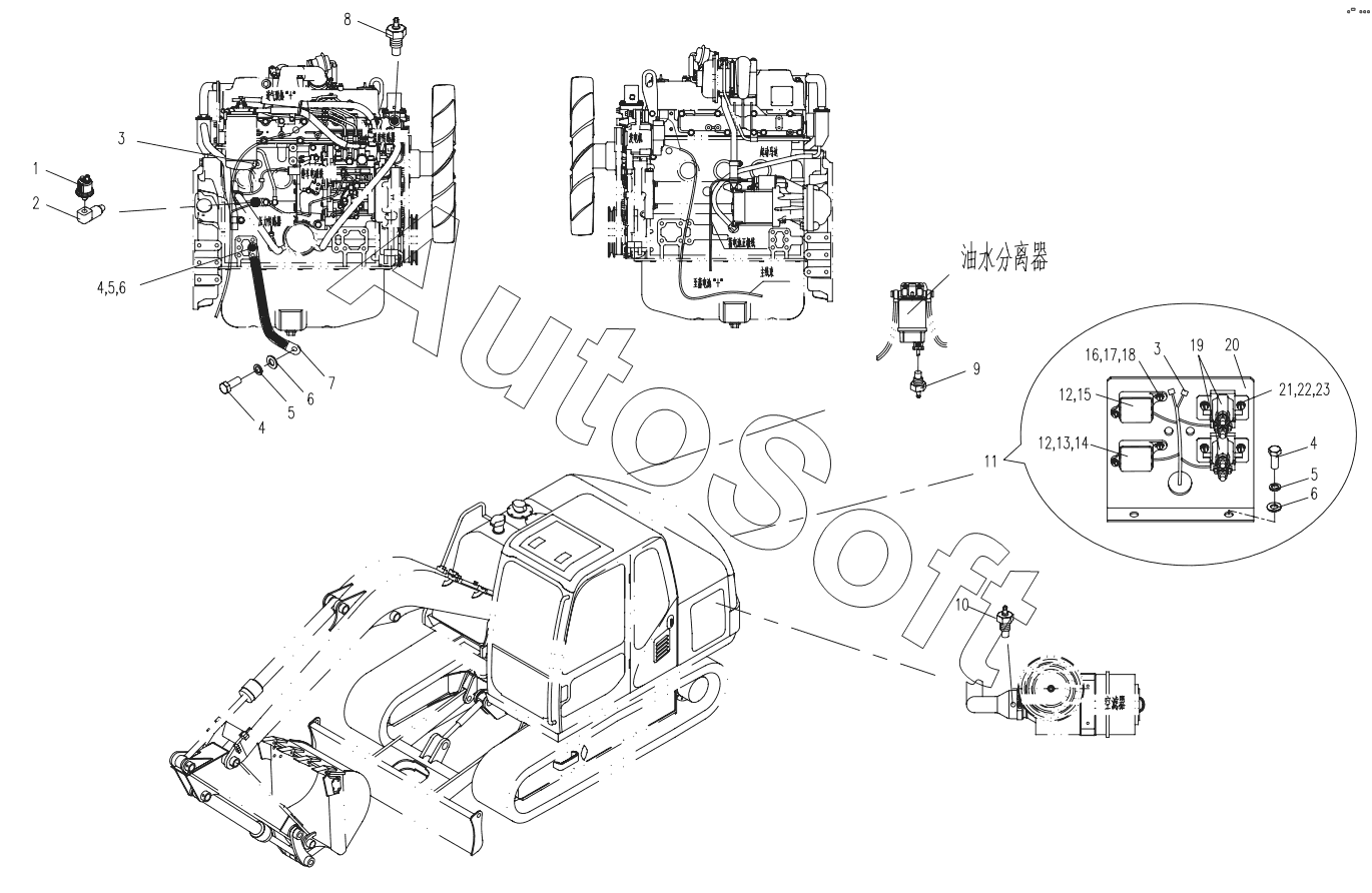 Каталог запасных частей к технике: Yuchai YC85-8. Электрическая сборка для двигателя (применяется для типов 860K12, 860K13, 860K14);ELECTRICAL ASSEMBLY FOR ENGINE (APPLY TO 860K12, 860K13, 860K14 TYPE)