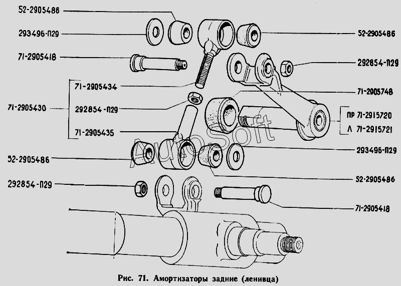 Каталог запасных частей к технике: ЗЗГТ ГАЗ-71. Амортизаторы задние (ленивца)