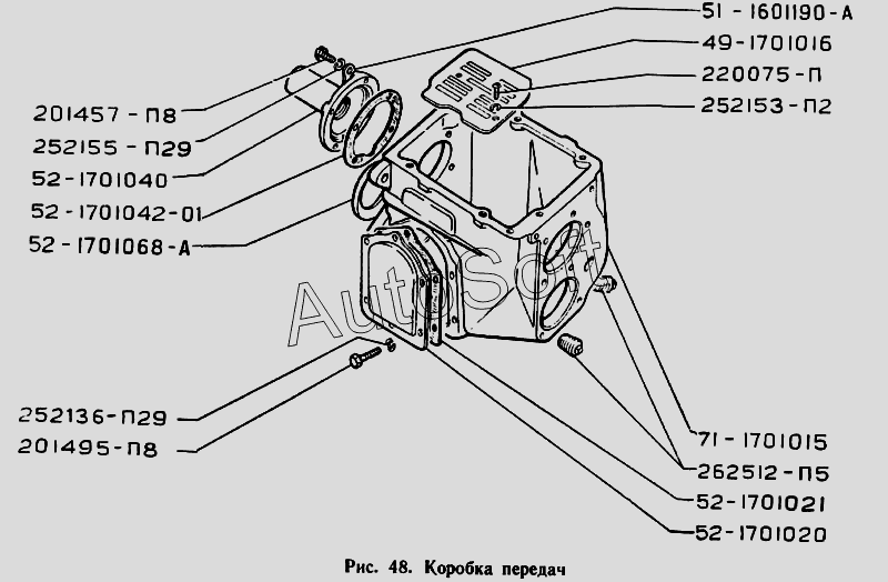 Каталог запасных частей к технике: ЗЗГТ ГАЗ-71. Коробка передач