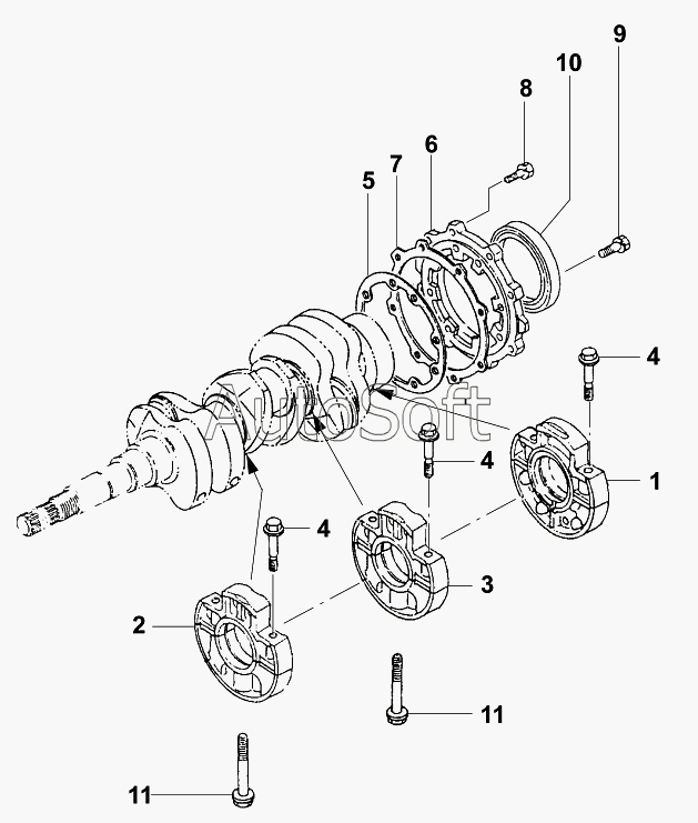 Каталог запасных частей к технике: JCB VMТ-270/280 (2005). Коренные подшипники/Main bearing, housing