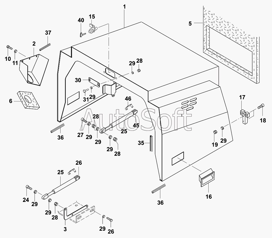 Каталог запасных частей к технике: JCB VMТ-270/280 (2005). Капот двигателя/Engine hood