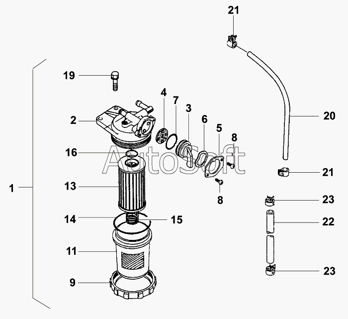 Каталог запасных частей к технике: JCB VMТ-270/280 (2005). Топливный фильтр/Fuel filter