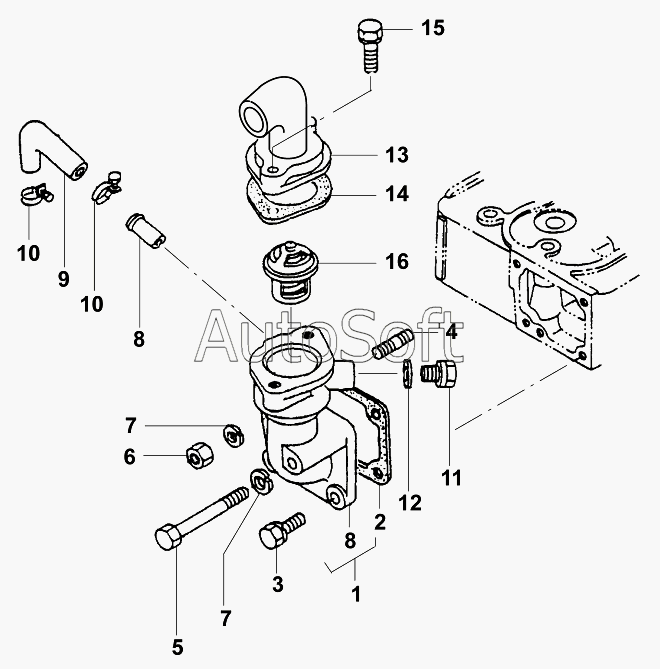 Каталог запасных частей к технике: JCB VMТ-270/280 (2005). Термостат/Water flange and thermostat