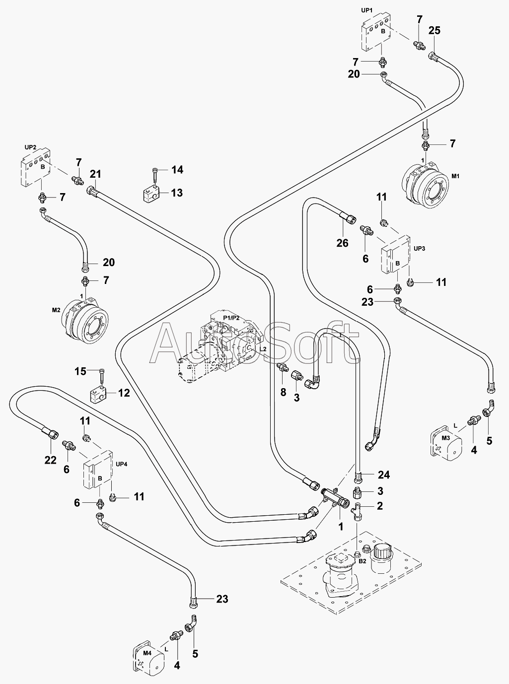 Каталог запасных частей к технике: JCB VMТ-270/280 (2005). Трубопроводы/Leakage oil line