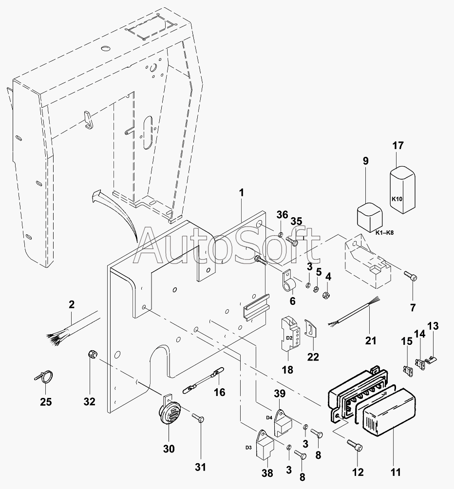 Каталог запасных частей к технике: JCB VMТ-270/280 (2005). Электрооборудование/Plate