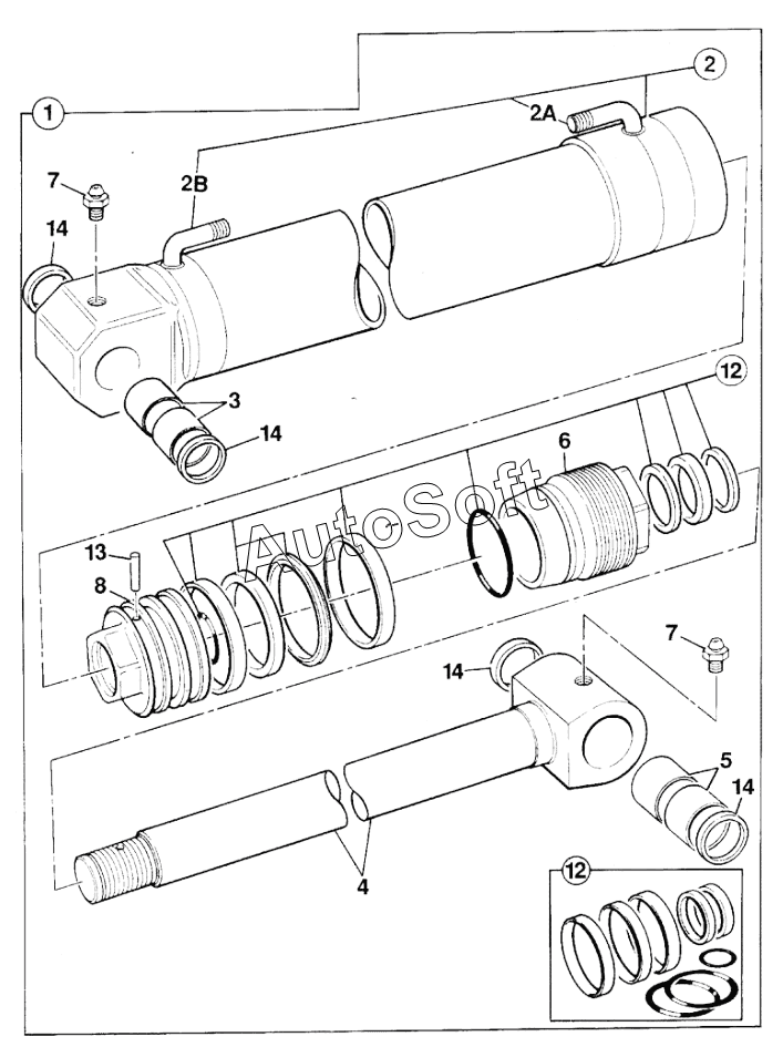 Каталог запасных частей к технике: JCB-3CX (Часть 2) (2015). RAM, BOOM STANDARD LIFT 110MM CYL X 60MM ROD (From: , To: M1618773)