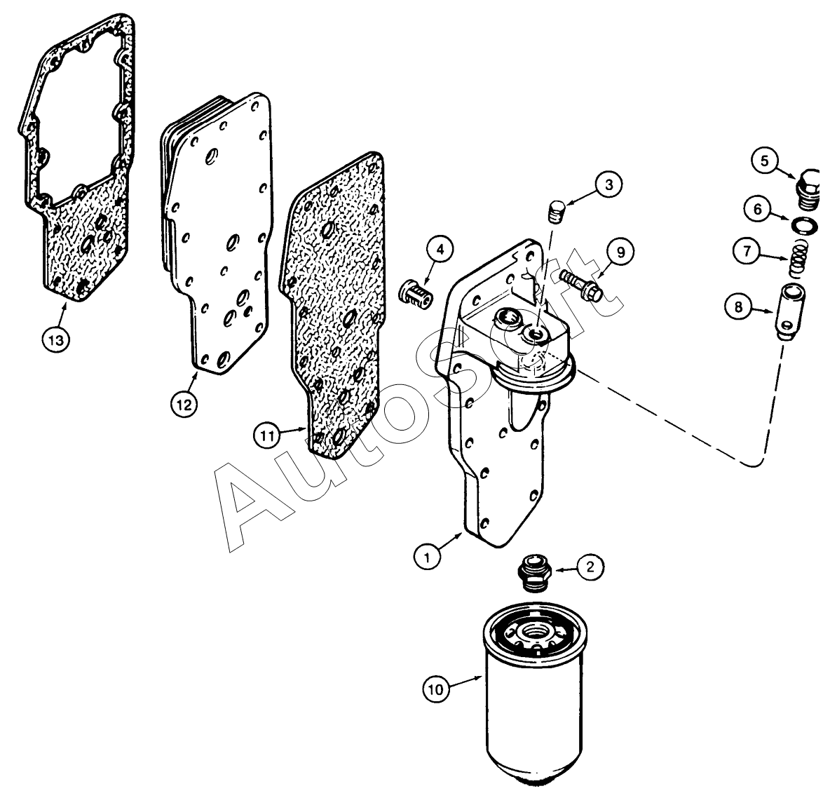 Каталог запасных частей к технике: CASE IH 845 (2002). ENGINE OIL COOLER AND FILTER