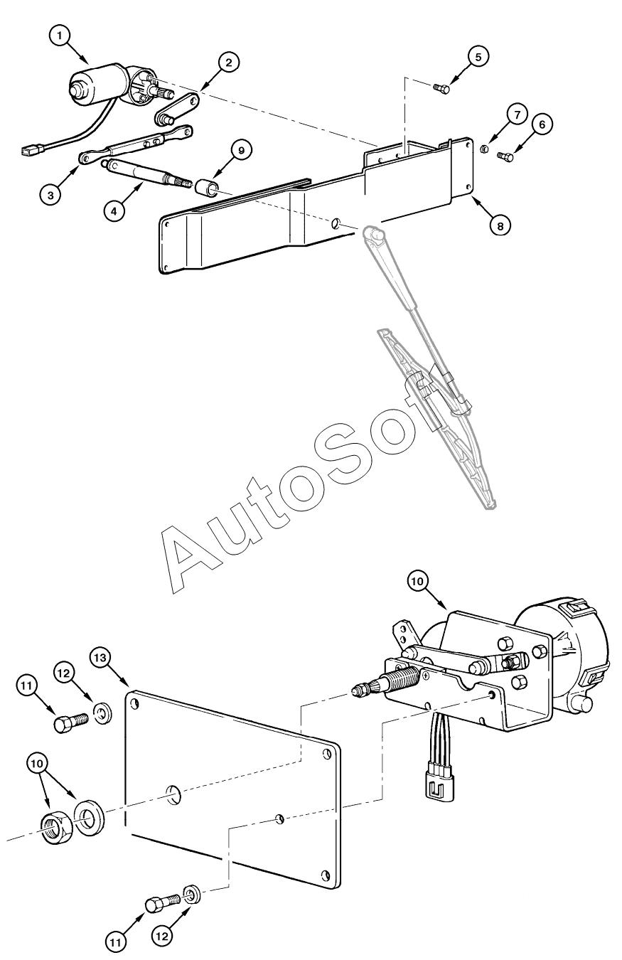 Каталог запасных частей к технике: CASE IH 845 (2002). FRONT/REAR WINDSHIELD WIPER MOTOR (LOW PROFILE CAB)