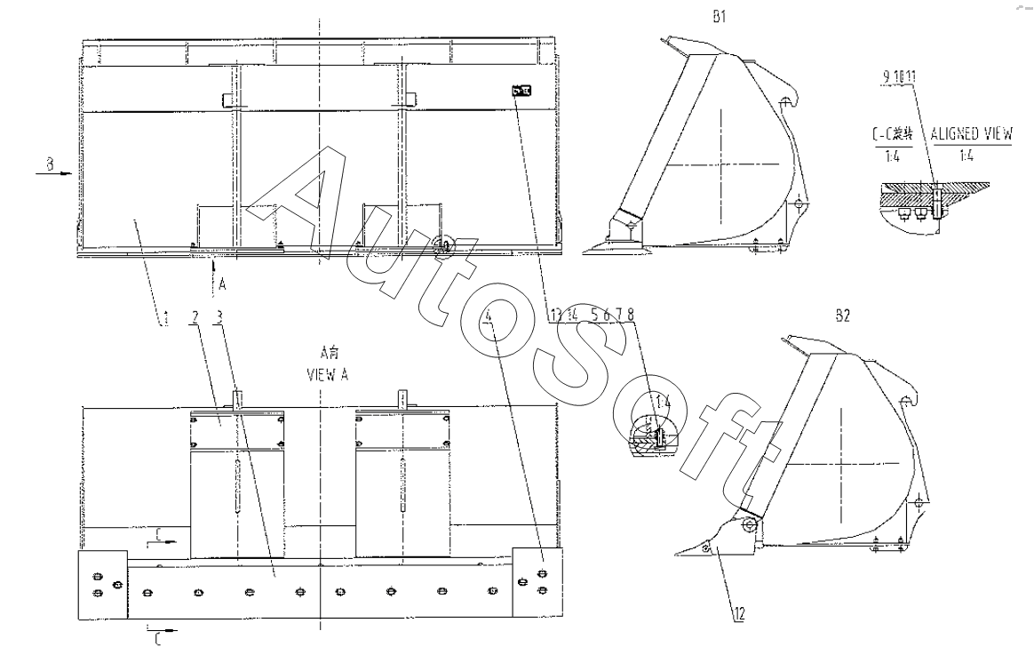 Каталог запасных частей к технике: LiuGong CLG-856III. 43C0472 001 BUCKET COUPLER 3,0 m3