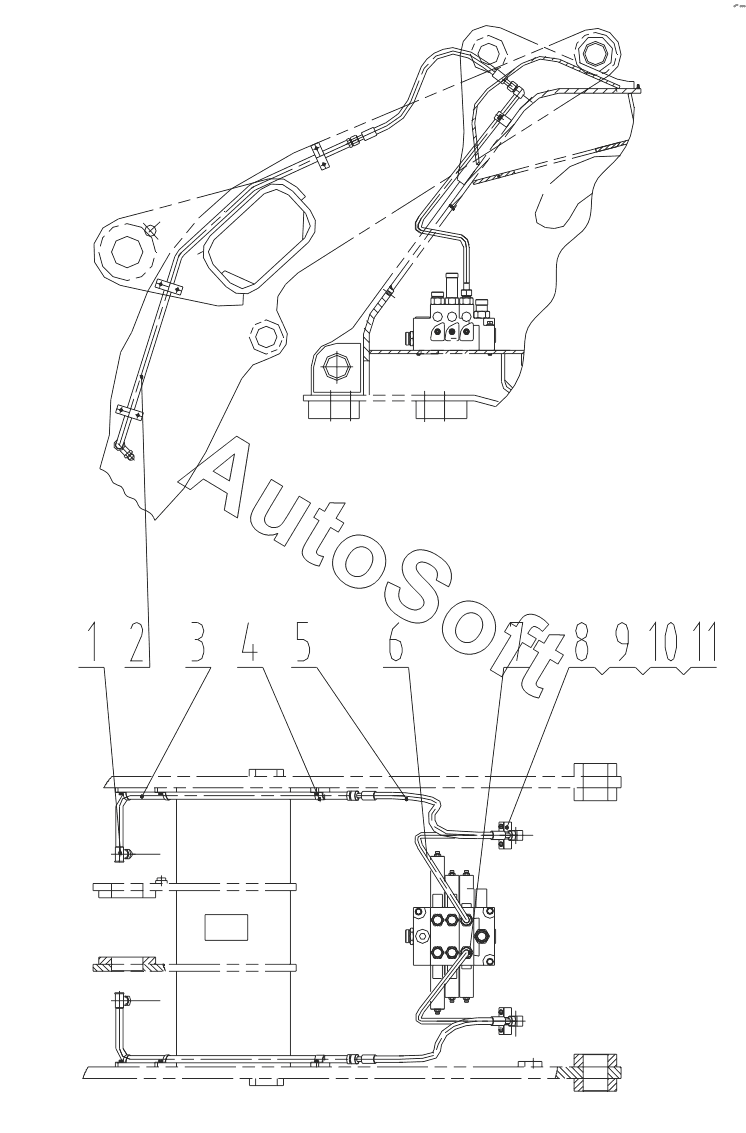 Каталог запасных частей к технике: LiuGong CLG-842. 00C0870 000 PILOT SYSTEM LINES