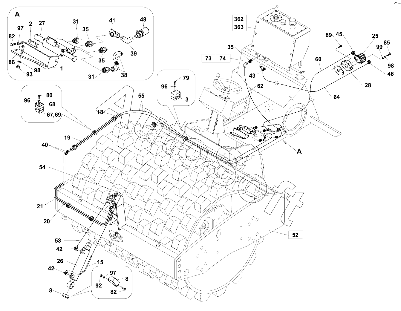 Каталог запасных частей к технике: Ammann ASC 150 (2010). 352 ГИДРАВЛИКА ЛЕМЕХА;HYDRAULICS OF BLADE