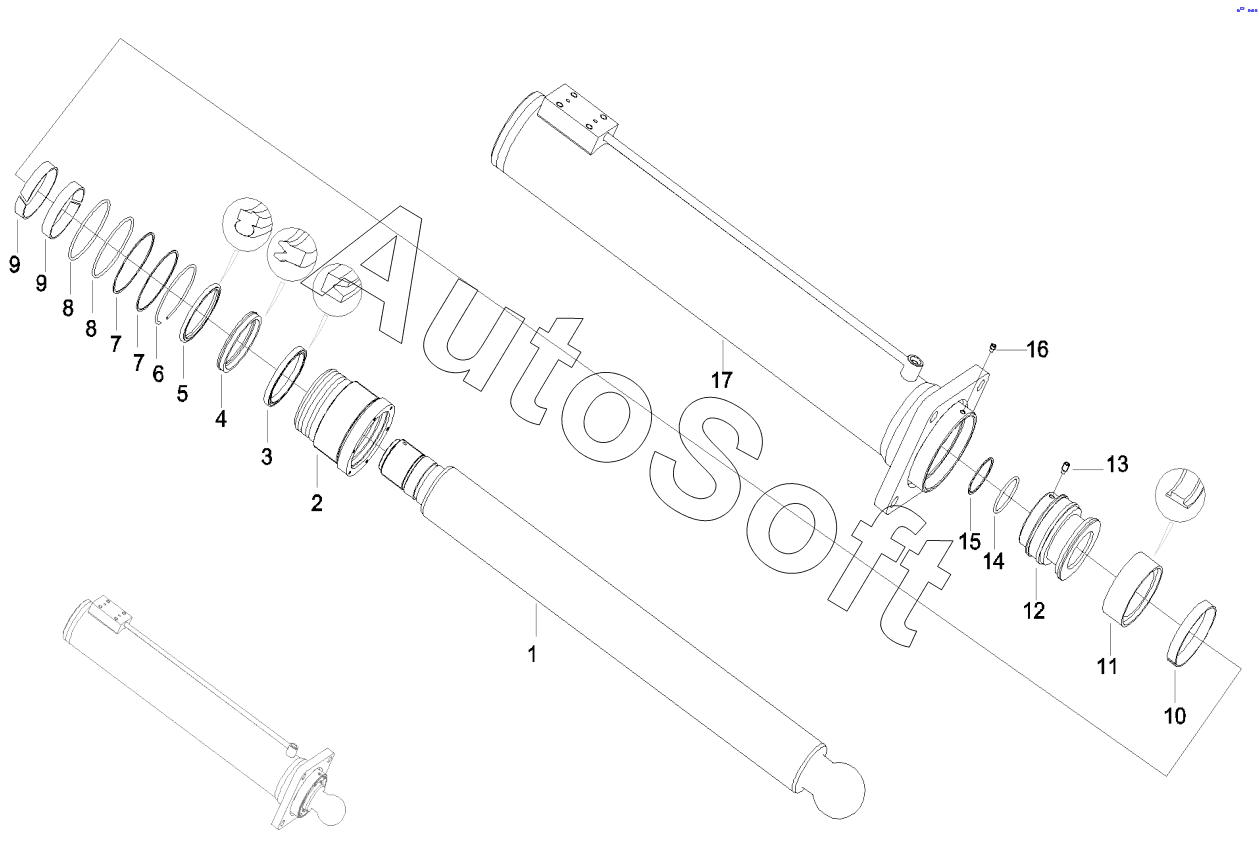Каталог запасных частей к технике: SANY STC800S. 11773421 Cylinder Assembly, Center Front Stabilizer