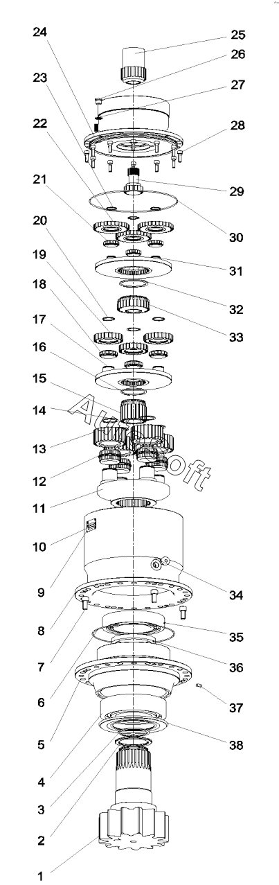 Каталог запасных частей к технике: SANY STC800S. 12291235 Swing Drive Assembly