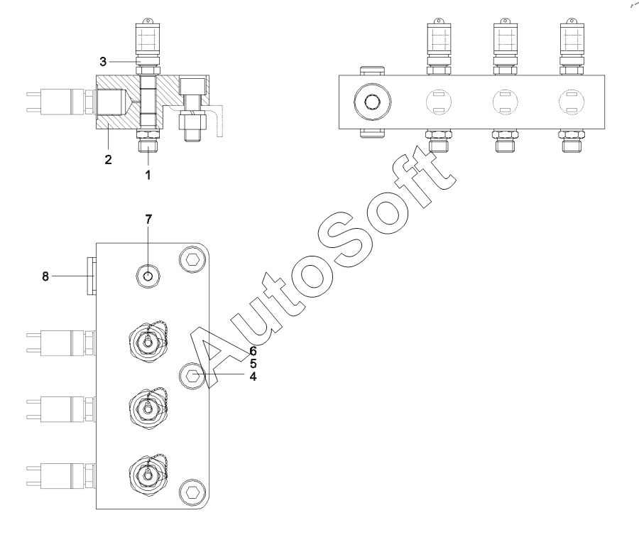 Каталог запасных частей к технике: SANY SR250 (SY460R). 11336219 Valve AS, pressure measuring