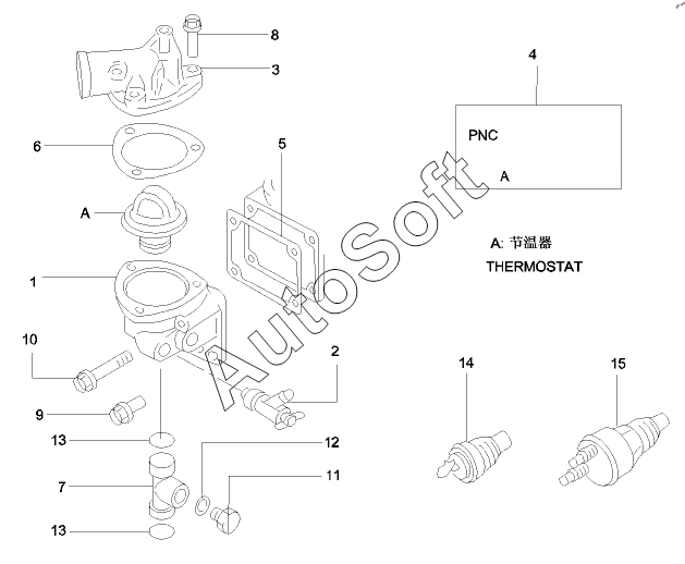 Каталог запасных частей к технике: SANY SY205C8. 60028495 Pipe Water & Thermostat