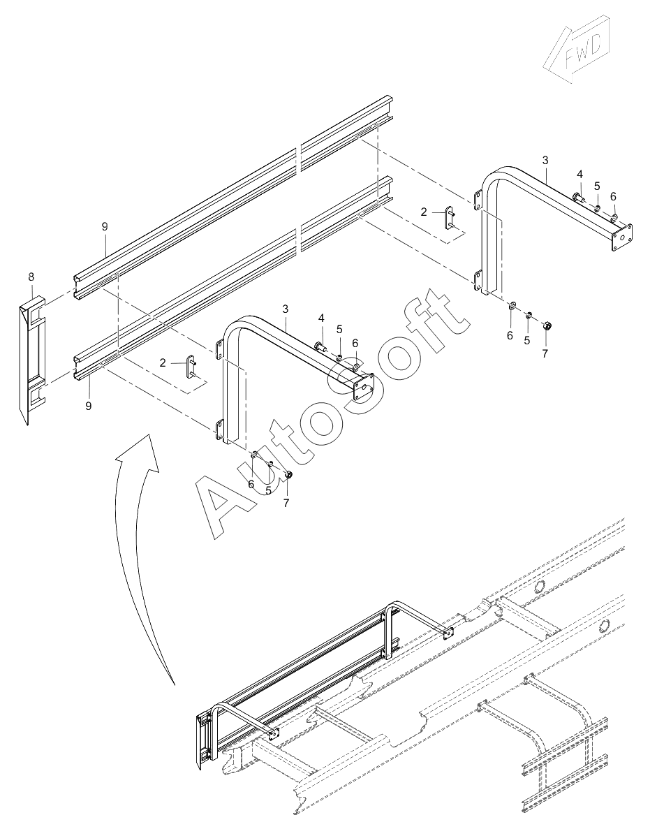 Каталог запасных частей к технике: SANY SYG5260THB 390C-10. BCB007672976 Mounting Frame, Guardrail