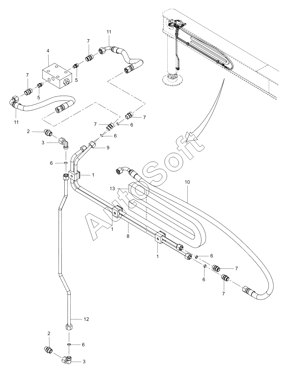 Каталог запасных частей к технике: SANY SYG5260THB 390C-10. BCB006916519 Hydraulic System, Left Front Outrigger