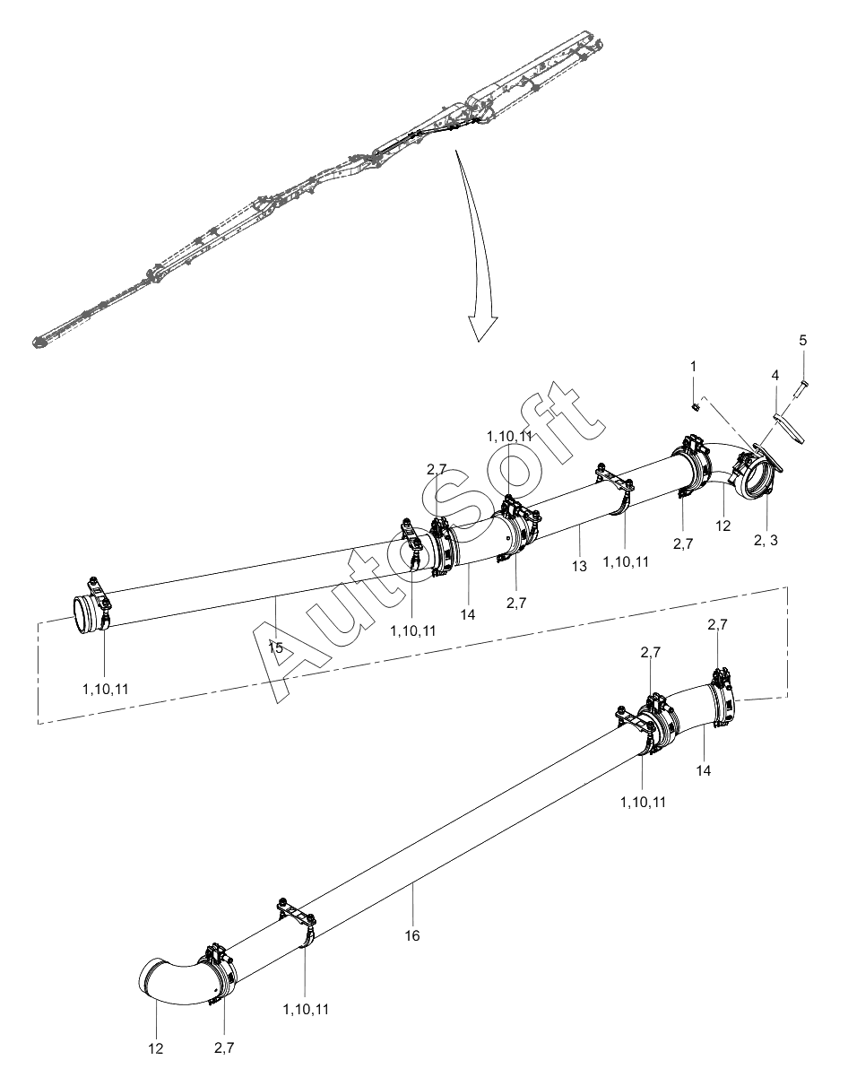 Каталог запасных частей к технике: SANY SYG5260THB 390C-10. BCB007042885 Boom Conveyor Piping