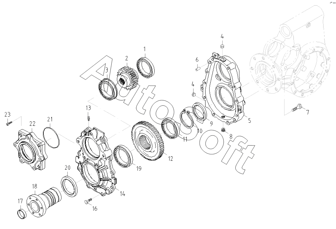 Каталог запасных частей к технике: Wacker Neuson Weidemann T4512 (2016). DISTRIBUTOR GEAR-BOX rear