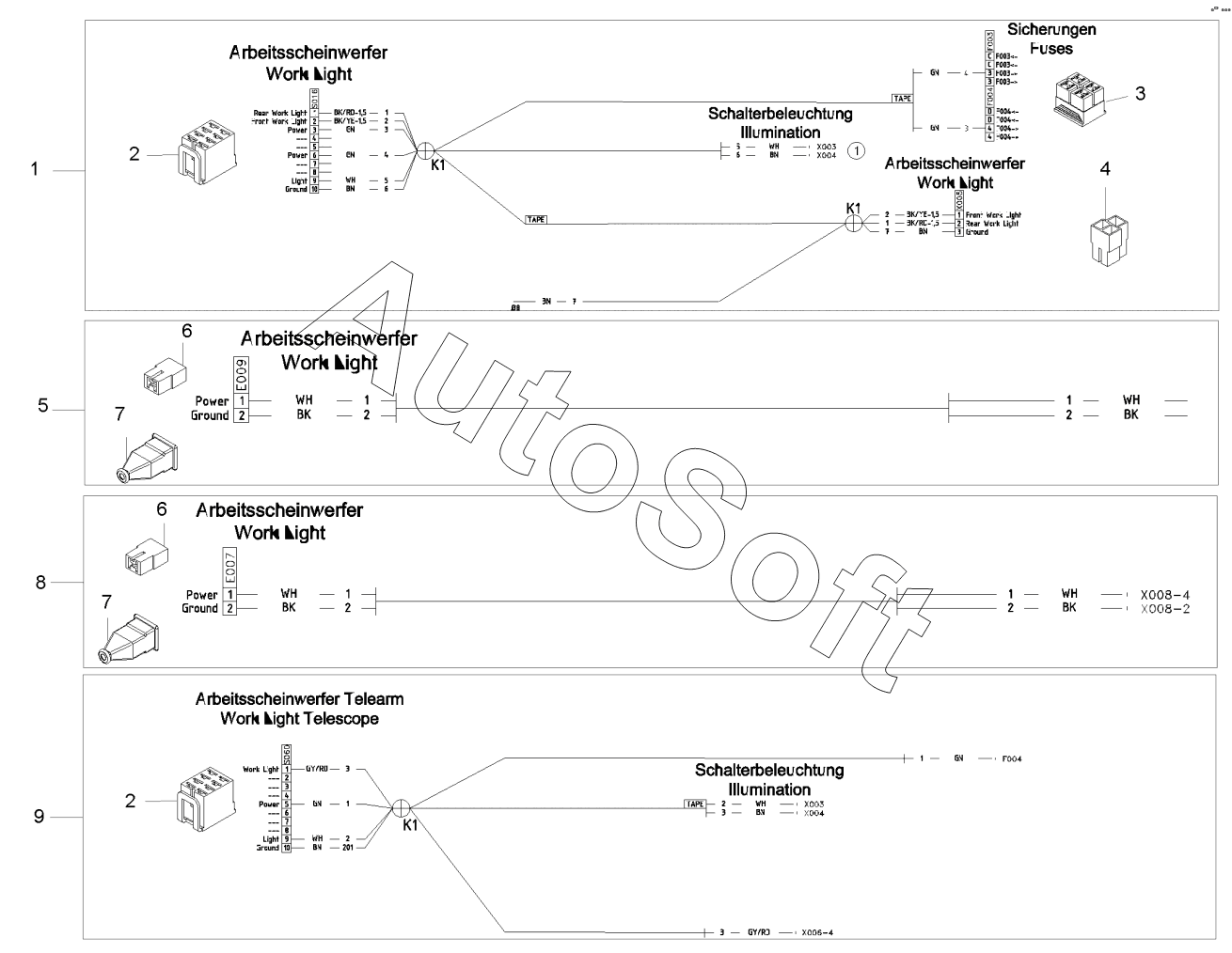 Каталог запасных частей к технике: Wacker Neuson Weidemann T4512 (2016). WIRING HARNESS LIGHT Working light